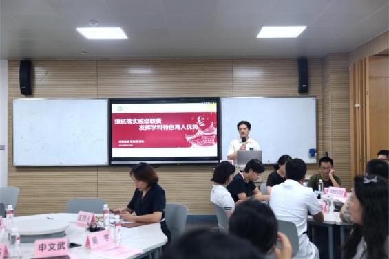 此外,苏白海部长以“狠抓落实班级职责,发挥学科特色育人优势”为题,从班主任的职责、工作举措、工作成效等方面进行了剖析与指导。为班主任明确工作职责,优化工作流程,承载育人载体等方面提供了工作思路与启发。